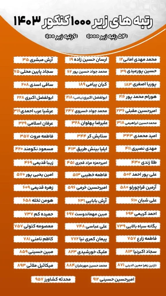 رتبه های برتر موسسه فولیتو کنکور 1403