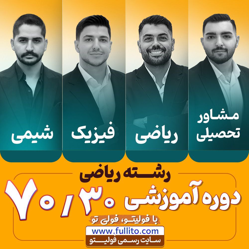 دوره آموزشی 70/30 رشته ریاضی شامل دروس فیزیک، ریاضی و شیمی جامع فولیتو، اضافات فیزیک مخصوص رشته ریاضی، 15 آزمون شبیه سازی کنکور رشته ریاضی و نهایی فول دروس فیزیک، ریاضی، ادبیات، عربی و زبان انگلیسی برای موفقیت در کنکور سراسری و امتحانات نهایی